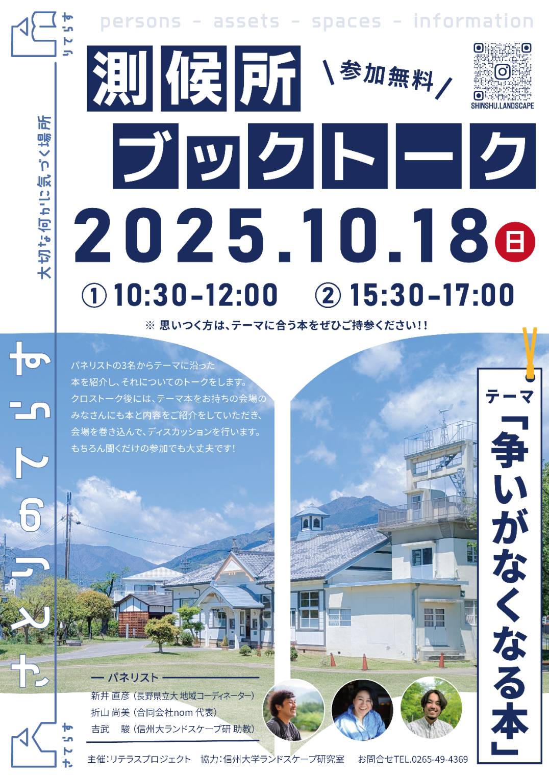 旧飯田測候所を会場に、本を通じて人と想いがつながる「測候所ブックトーク」を開催します。